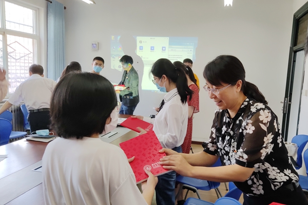 党总支书记苏蓉为毕业生党员赠送订制笔记本