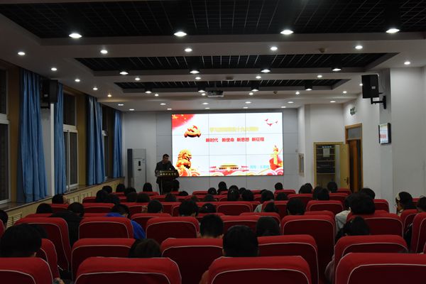 王勇胜同志首先用生动的发展成就阐明中国进入新的历史方位,通过“四个伟大” 明确党员要不负重托,无愧历史,以党的坚强领导和顽强奋斗,不断奋进。紧接着又从新时代中国特色社会主义思想形成背景、丰富内涵、深刻意义等等方面层层剖析,把十九大精神更加条理清晰的呈现在学生面前,最后明确两个百年奋斗目标,解读十九大以来党的各项政策,鼓励同学们要坚定理想信念,志存高远,脚踏实地,在实现中国梦的生动实践中放飞青春梦想,在为人民利益的不懈奋斗中书写人生华章。