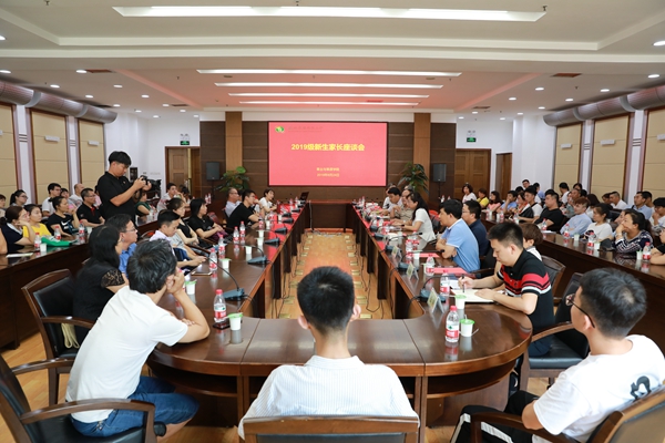 8月24日-25日,性吧 召开了2场2019级新生及家长座谈会。性吧 院长呼天明、党总支书记苏蓉、副院长杨培志、副院长温仲明、党总支副书记兼副院长阮鹏,性吧 部分教授、系主任、新生班主任、辅导员、2019级新生及家长180余人参加座谈会。会议由党总支副书记阮鹏主持。