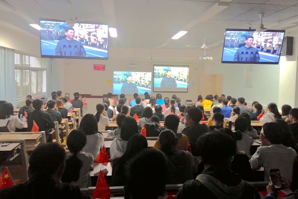 10月1日上午10时,庆祝中华人民共和国成立70周年大会在北京天安门广场隆重举行。性吧 师生在北校八号教学楼集体观看直播,并纷纷表达感受。