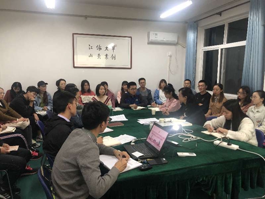 10月11日晚,在性吧 409会议室,苏蓉书记对性吧 研究生党建工作进行调研,并与研究生党支部成员一起进行第五周政治理论学习。性吧 党总支书记苏蓉、党务秘书陈忱、党支部全体党员以及入党积极分子参加了此次调研,会议由党支部副书记邓晨玥主持。