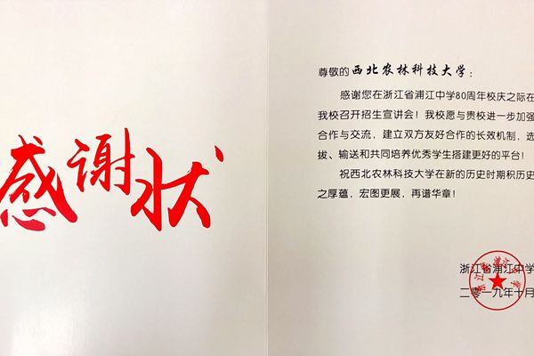 浦江中学感谢状