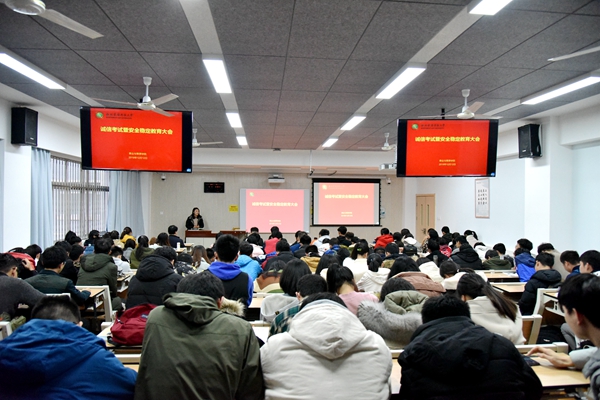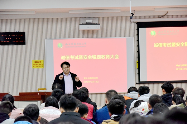 为严肃考风考纪,营造文明、诚信的良好学风氛围;为进一步提高学生安全意识,营造健康向上的校园文化氛围。我院于12月12日下午在8号教学楼召开诚信考试暨安全稳定教育大会。性吧 副院长杨培志、辅导员郭燕楠、全体2018、2019级本科生参加会议,会议由辅导员郭燕楠主持。